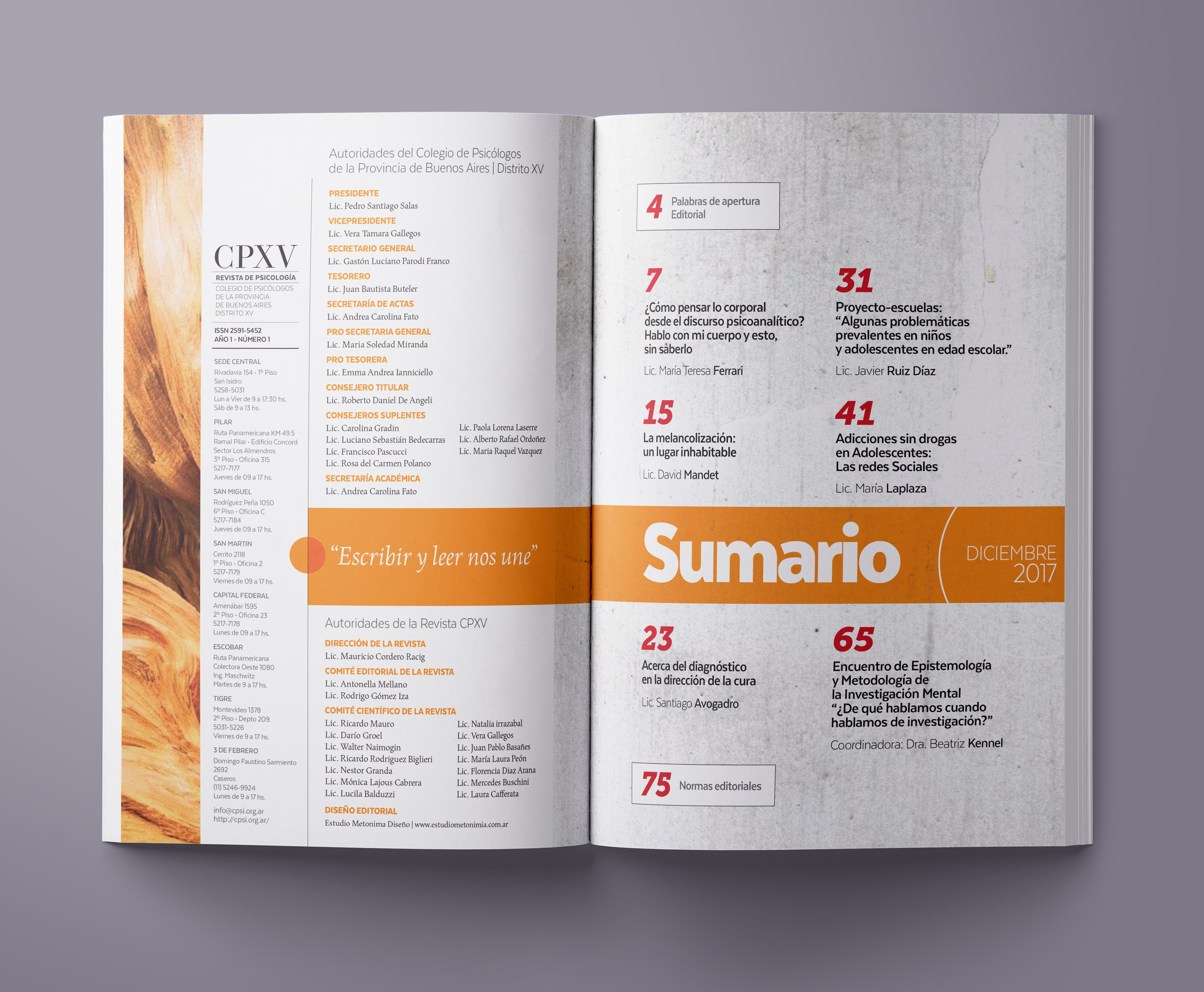 El Colegio de Psicólogos de Buenos Aires – Distrito XV nos encomendó el diseño de su revista mensual, pensada para una doble circulación: impresa y digital. Un equilibrio entre formato y funcionalidad.
