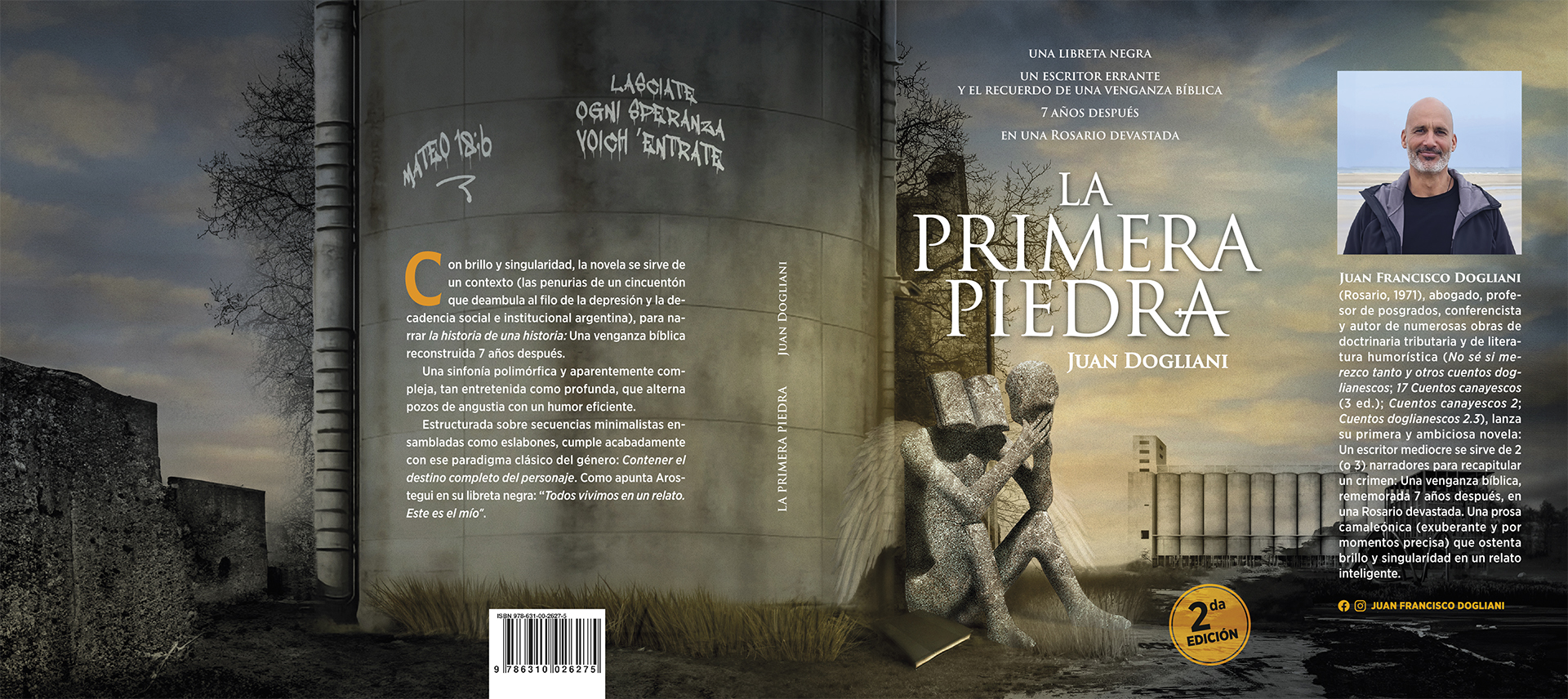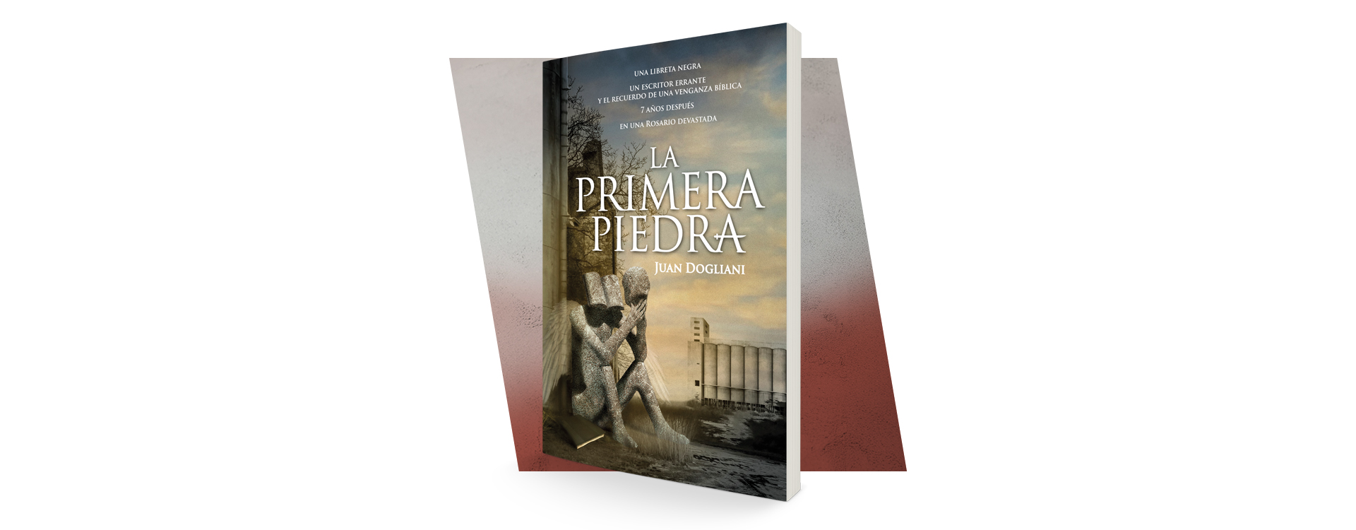 La primera piedra es una novela negra de Juan Dogliani, un autor con quien siempre buscamos lograr una simbiosis entre sus textos y nuestras ilustraciones de tapa.