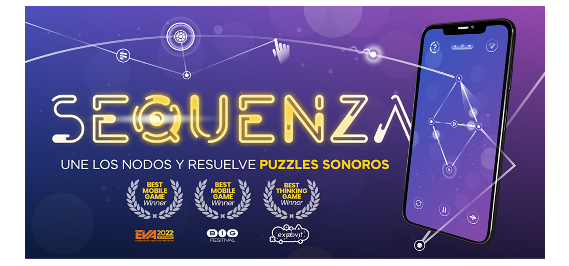 Sequenza fue el primer gran proyecto de Anotter Game Studio: un puzzle sonoro para móviles que ganó tres premios internacionales (Argentina, Costa Rica y Brasil). Diseñamos el arte, UI y comunicación visual.